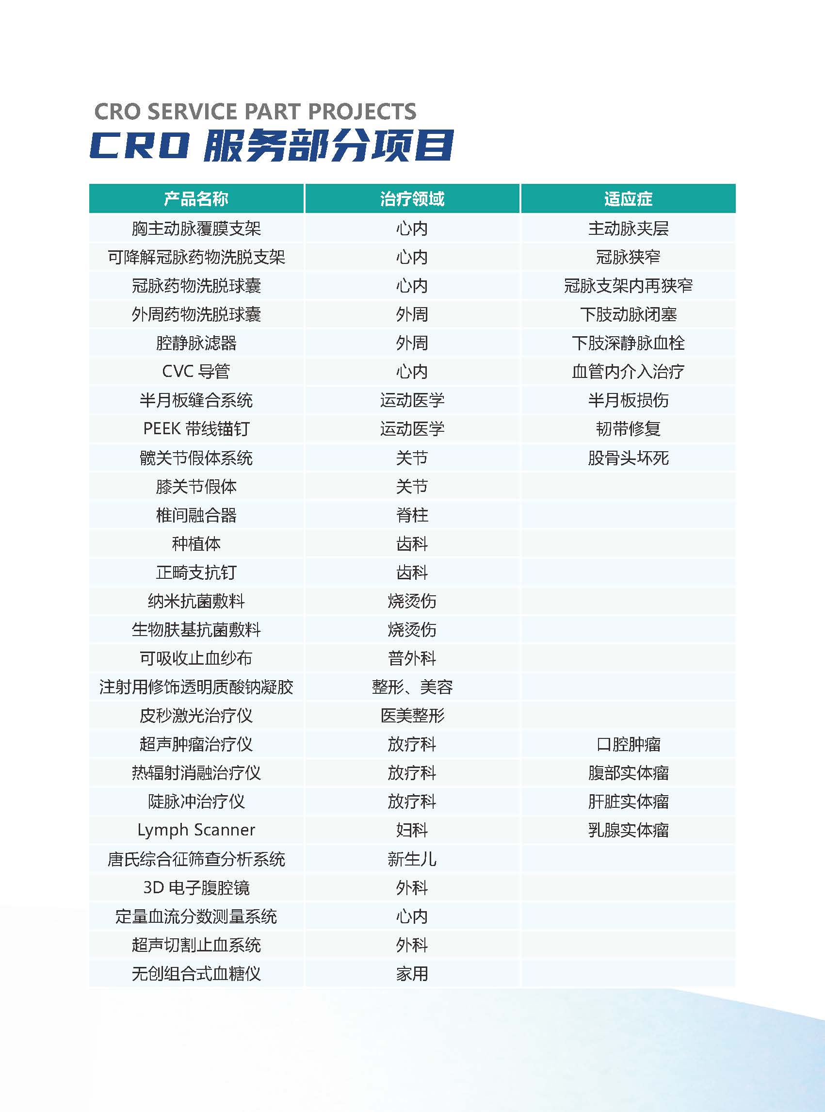 CRO 服务部分项目